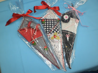 Este de poá vermelho/preto e xadrez acompanha alfineteiro carretel de linha, achei o máximo.